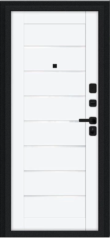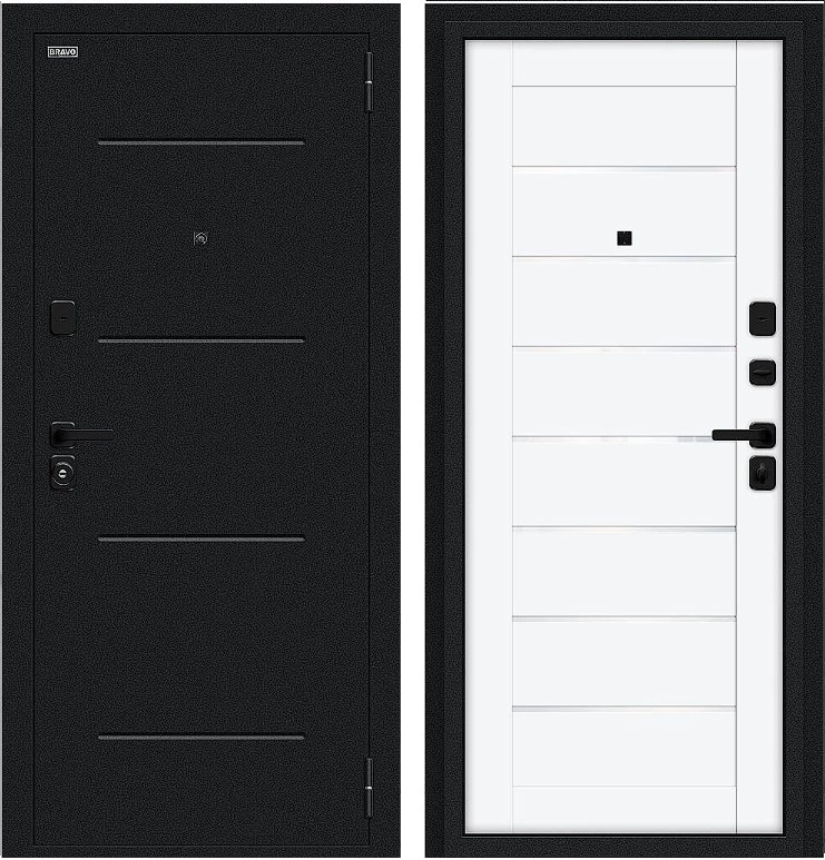 Надежная входная Дверь Браво Техно/SBlack Букле черное/White Silk премиум класса по цене 34 983 руб. Большая толщина стали защитит от проникновения в ваш дом, квартиру или коттедж. Используется очень качественная фурнитура: замки, цилиндры, ручки, защелки. Покрытие и отделка двери изготовлено под внимательным контролем производителя. Дверь имеет долгий срок службы и гарантию.